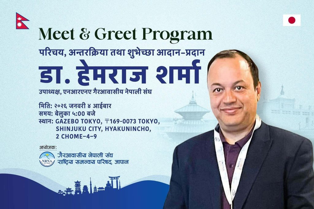 डा. शर्माको सम्मान तथा विचार विमर्शका लागि एनआरएनए राष्ट्रिय समन्वय परिषद (NCC) जापानले विशेष अन्तरक्रिया कार्यक्रम आयोजना गरेको छ। कार्यक्रमको विवरण निम्नअनुसार छ: