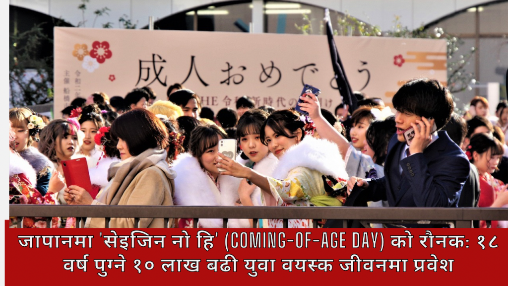 जापानमा आज सोमबार राष्ट्रिय सार्वजनिक बिदाका साथै वर्षकै एक महत्वपूर्ण उत्सव ‘सेइजिन नो हि’ (成人の日) अर्थात् ‘कमिङ अफ एज डे’ भव्यताका साथ मनाइँदैछ। हरेक वर्ष जनवरी महिनाको दोस्रो सोमबार मनाइने यो पर्वले जापानी युवाहरूको जीवनमा नयाँ अध्यायको सुरुवातलाई संकेत गर्दछ।