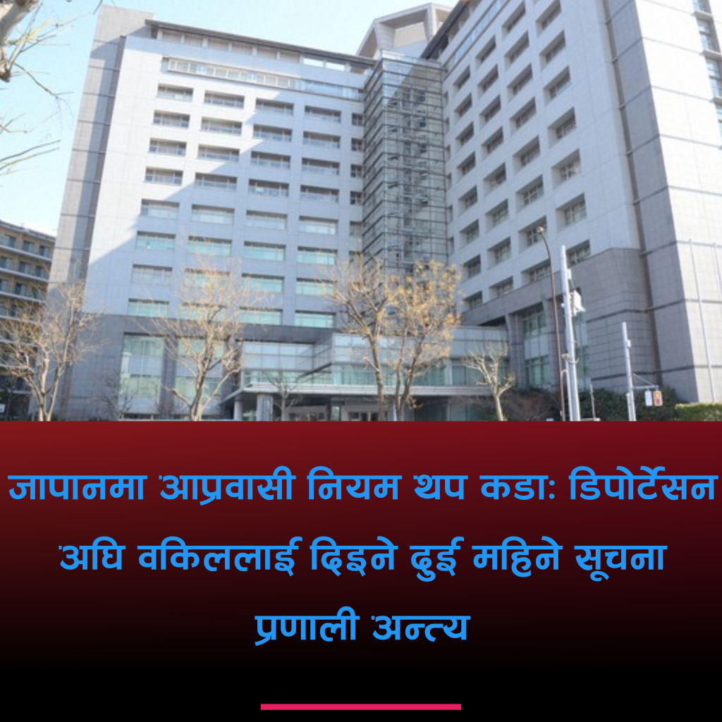 टोकियो, जापान । जापान सरकारले विदेशी नागरिकहरूलाई देश निकाला (डिपोर्टेसन) गर्नुभन्दा दुई महिना अगाडि उनीहरूका वकिलहरूलाई जानकारी दिने लामो समयदेखिको अभ्यासलाई आधिकारिक रूपमा अन्त्य गरेको छ। सन् २०१० देखि बार एसोसिएसनसँगको विशेष सहमतिमा लागू गरिएको यो व्यवस्थालाई अध्यागमन सेवा एजेन्सीले फेब्रुअरी १ देखि पूर्ण रूपमा खारेज गरिदिएको हो।