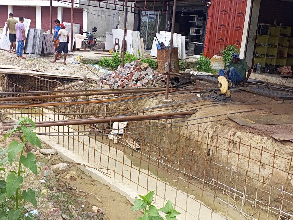 फलामका सरियाहरू ठड्याएर ठेकेदार भागेपछि अहिले त्रिभुवन माविदेखि गोल्छासम्मको नाली धरापका रुपमा परिणत हुँदै गएको छ ।