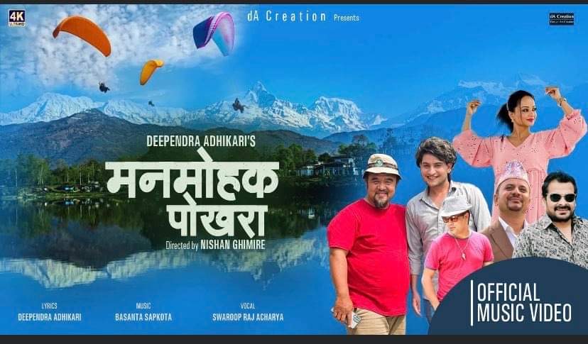 त्यही सिलसिलामा पछिल्लो पटक आएको छ नयाँ गीत ‘मनमोहक पोखरा’। हाल जापानमा रहेका पोखरेली सर्जक दीपेन्द्र अधिकारीले पोखराको सौन्दर्यलाई शब्दमा उतारेका छन्।