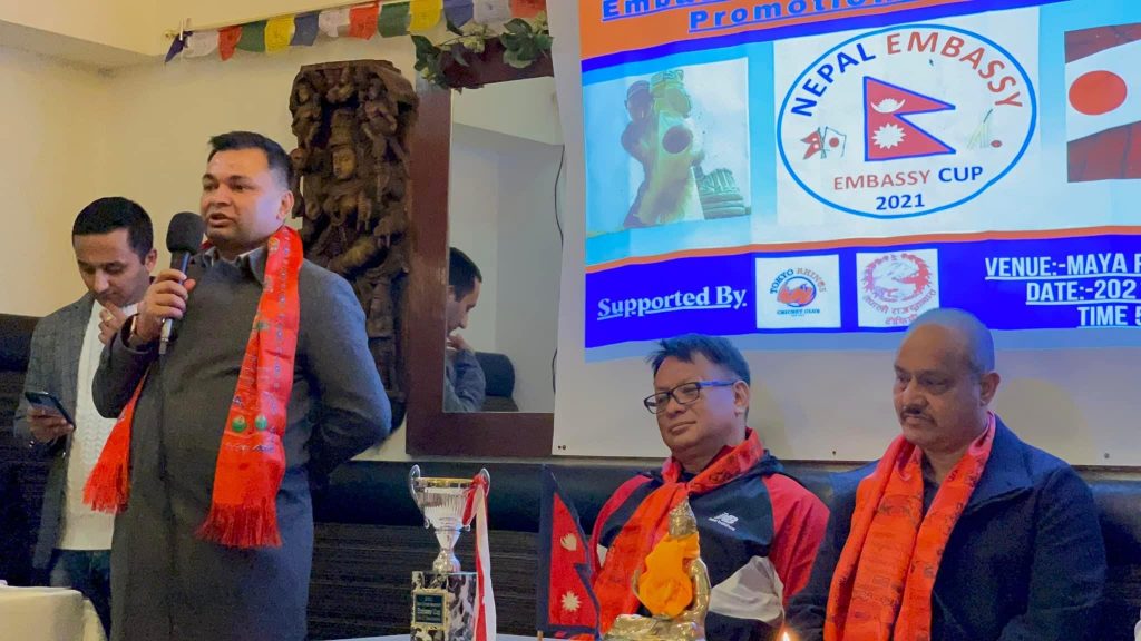 जापान क्रिकेट एसोसियसनद्वारा अक्टोबर ३० र ३१ तारिक तोचिगी प्रान्तमा रहेको सानो अन्तराष्ट्रिय क्रिकेट मैदानमा सम्पन्न भएको एम्बेसी कप-२०२१ प्रतियोगितामा नेपाल एम्बेसीको तर्फबाट विजयी खेलाडी,व्यवस्थापक तथा सहयोगदाताहरूलाई प्रमाण पत्र वितरण तथा धन्यवाद ज्ञापन कार्यक्रम सम्पन्न भएको छ ।