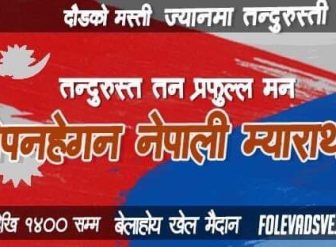 कोपनहेगन, १३ सेप्टेम्बर । डेनमार्कको राजधानी कोपनहेगनमा रहेका नेपालीहरुविच मैत्रीपूर्ण म्याराथन (लामो दुरीको दौड) हुने भएको छ । ‘दौड़को मस्ती, ज़्यानमा तन्दुरुस्ती’ भन्ने मुल नारा सहित कोपनहेगन नेपाली म्याराथन हुने भएको हो । गैर आवासीय नेपाली संघ (एनआरएनए) डेनमार्कको आयोजनामा सेप्टेम्बर १७ तारिखका दिन ५ किलोमीटरको म्याराथन कोपनहेगनको बेलाहोय खेल मैदानको बिशाल पोखरी पार गरी पुरा हुनेछ । नेपाली समाजविच भावानात्मक, सामाजिक एकता तथा शारीरिक स्वास्थ्य र तन्दुरुस्तीसम्बन्धी जन चेतनाको अभिवृद्धि गराउने उद्देश्यले म्याराथन हुन् लागेको हो । पुरुष, महिला…